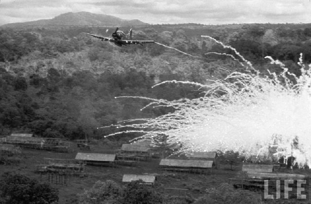 Người phi công gan lỳ của quân đội Hoa Kỳ bay từ hướng Đông với chiếc khu trục Douglas A-1 được trang bị đến tận răng. Anh ta bay qua đầu tôi, khoảng gần 50 thước, ngay bên trên phía nam cánh đồng mía và nói chuyện thẳng với tôi qua tần số FM. Tôi có thể nhìn thấy anh đang nhìn thẳng xuống cánh đồng mía. “Đốt cháy nó”, tôi la to. Bay thật thấp và thật chậm theo cỡ trên đầu ngọn cây, phi công có thể nhìn thấy đang quan sát thật rõ tình hình bên dưới. Rồi, anh bay vòng lại, và bắt đầu cuộc oanh kích đầu tiên, thả trái bom napalm. Nó phát nổ với một vòng cầu lửa màu trắng vàng, biến đổi cánh đồng thành một bức tường lửa. Các lằn đạn màu xanh từ cây súng 51 ly do bọn Trung Cộng chế tạo đã được nhìn thấy bắn theo chiếc A-1. Chiếc Skyraider thứ nhì đang bỏ trái bom napalm trong lần thả đầu tiên. Tôi có thể nghe và thấy được tiếng động của những tiếng nổ lốp bốp và những cái đầu của quân địch nhô ra từ đám lửa nóng cháy, và đám lính địch la hét trong sự kinh hoàng. Quân Bắc Việt đang tập trung trong cánh đồng mía đã bị đốt ra tro. Áp lực của quân địch tại tuyến phòng thủ bên tay mặt tôi coi như không còn nữa.