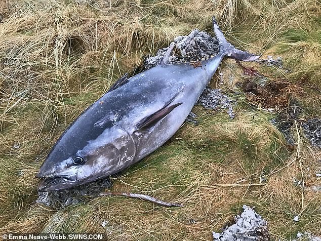 Cá ngừ là một trong những loài cá lớn nhất và nhanh nhất thế giới, theo National Geographic. Xác của con cá ngừ dạt vào Sanday ước tính dài khoảng 2m.
