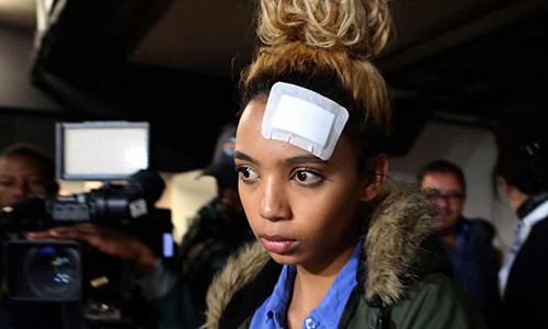 Nữ người mẫu Engels, năm nay 21 tuổi, bị những vết cắt trên trán và đằng sau đầu. Trong khi đó, bà Mugabe phủ nhận cáo buộc và cho rằng cô Engel, trong tình trạng "say xỉn và không tỉnh táo", đã tấn công bà bằng một con dao.