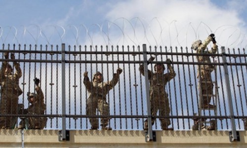 Mỹ lắp đặt hàng rào dây thép gai ở biên giới Mỹ - Mexico, khu vực thuộc thành phố McAllen, bang Texas ngày 5/11. Ảnh: Reuters