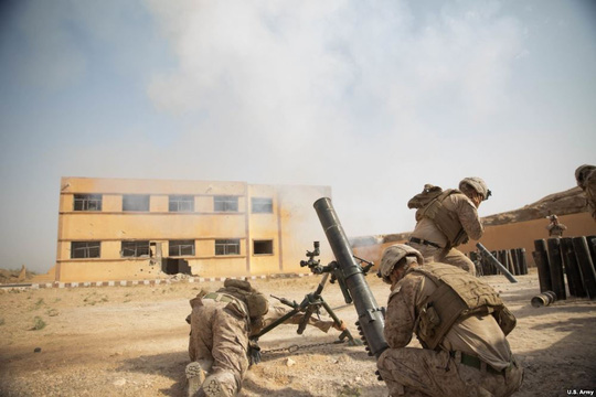 Lính thủy đánh bộ Mỹ tấn công một mục tiêu của IS ở miền Đông Syria hồi tháng 10-2018 Ảnh: QUÂN ĐỘI MỸ