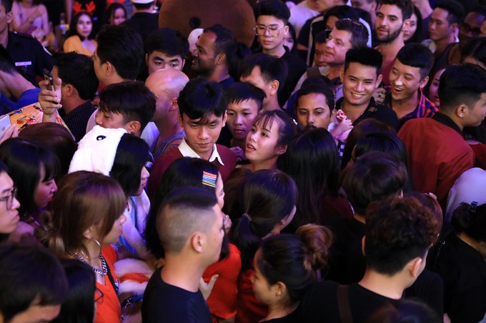 Tối 24/12, phố Tây Bùi Viện (quận 1, TP HCM) ken đặc người đổ về vui chơi Noel. Mọi người phải nhích từng chút một trên con phố dài hơn 700 m.