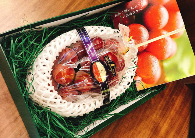 Tương tự, nho Ruby, một trong những loại quả thuộc hàng “quý tộc” ở Nhật Bản, thế nhưng về đến Việt Nam, loại nho này được mọi người tranh nhau mua dù giá đắt khét lên tới 11 triệu đồng/chùm nặng chỉ 800-900gram. Tính ra, mỗi quả nho loại này có giá từ 360.000-550.000 đồng.