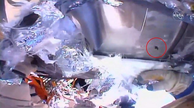 Chỉ vài ngày trước khi quay lại trái đất, các phi hành gia đã có chuyến đi ra ngoài khoảng không kéo dài 8h để điều tra về lỗ thủng trên. Họ dùng dao và kéo để tạc vào vỏ ngoài của ISS. Họ thấy rằng lỗ thủng làm hao hụt một chút áp suất và vá lỗ thủng.