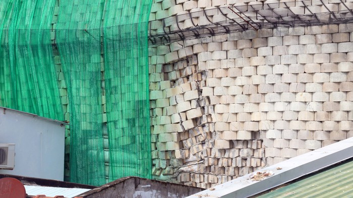 Trong khi đó, chủ đầu tư dự án bà Lê Tú Anh, Giám đốc Công ty TNHH Đồi Xanh Nha Trang, vẫn khẳng định bức tường an toàn, việc sạt lở chỉ là lớp gạch trang trí bên ngoài.