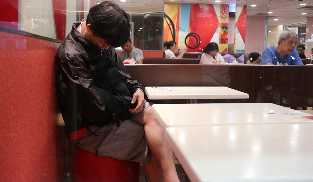 Một nhóm người "tị nạn" tiệm ăn nhanh, ám chỉ những người ngủ qua đêm tại các cửa hàng mở cửa 24/24h vì không có tiền thuê nhà (Ảnh: SCMP).