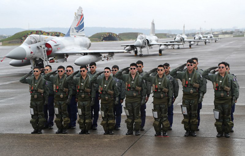 Phi công Đài Loan trước cuộc tập trận tại căn cứ không quân Hsinchu hôm 16/1. Ảnh: CNA.