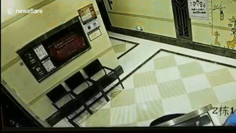 Tại một khu chung cư ở thành phố Cám Châu, tỉnh Giang Tây, phía Đông Nam Trung Quốc được camera an ning ghi lại một vụ việc mới xảy ra cho người phụ nữ định mở cửa thì tấm cửa kính cao hơn 2m đã bất ngờ đổ sập đè lên người phụ nữ này may mắn chỉ bị trầy xát nhẹ, nếu không nhờ vào vật này, có lẽ người phụ nữ đã bị thương nặng hơn nhiều.