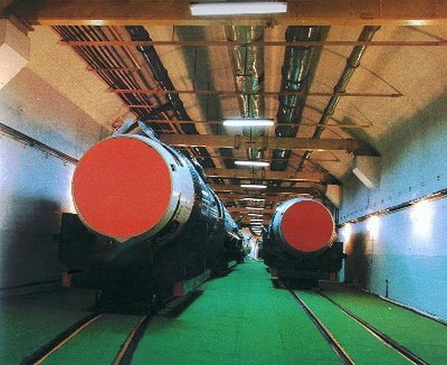 Tên lửa đạn đạo liên lục địa DF-5 của Trung Quốc trong một hầm lưu trữ. Ảnh: Sina.
