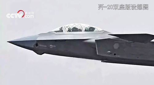 Đồ họa phiên bản 2 chỗ ngồi của tiêm kích tàng hình J-20. Ảnh: CCTV.