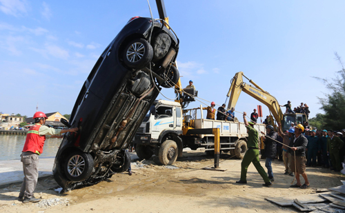 Lực lượng cứu hộ đã tìm kiếm suốt đêm qua. Đến 8h30 sáng nay 25/1, thi thể hai vợ chồng được đưa lên bờ, còn thi thể cháu trai kẹt trong ôtô.