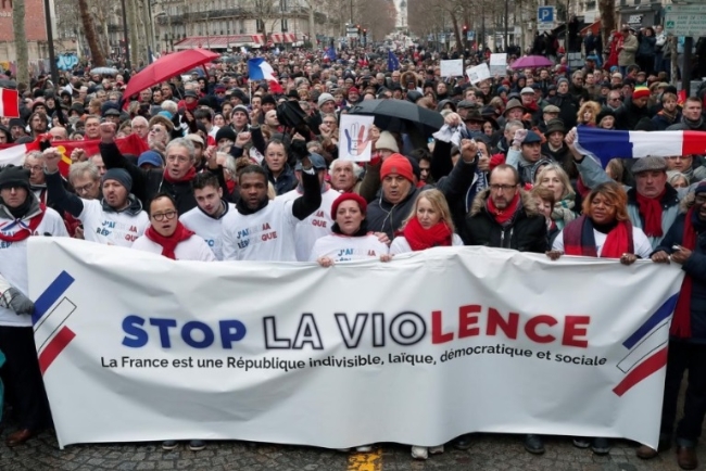 Ngày 27.1, khoảng 10.000 người tập trung biểu tình tại thủ đô Paris (Pháp) nhằm phản đối những vụ bạo lực do phong trào “Áo vàng” gây ra trong nhiều tuần nay.