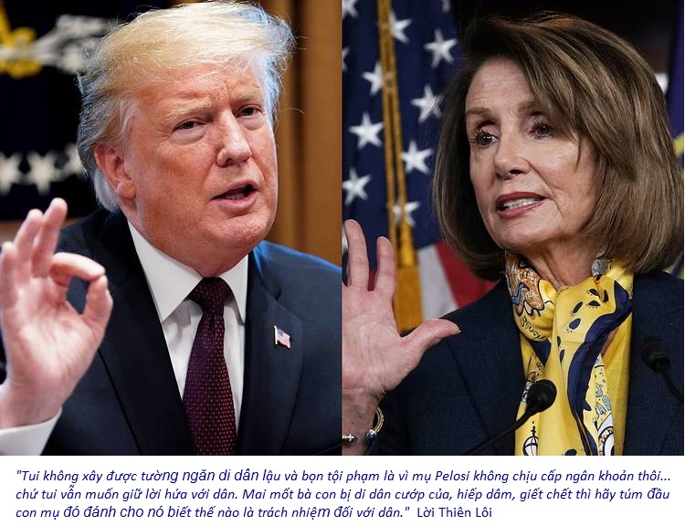 Ông Trump đe dọa rằng ông sẽ không tiếp tục làm việc với Chủ tịch Hạ viện Nancy Pelosi, nhấn mạnh sẽ xây dựng bức tường bằng cách này hay cách khác. "Tôi thực sự đã luôn hòa thuận với bà ấy, nhưng bây giờ tôi không nghĩ mình sẽ làm được nữa", ông Trump nói với tờ Times, cáo buộc bà Pelosi "làm đất nước bất đồng sâu sắc."