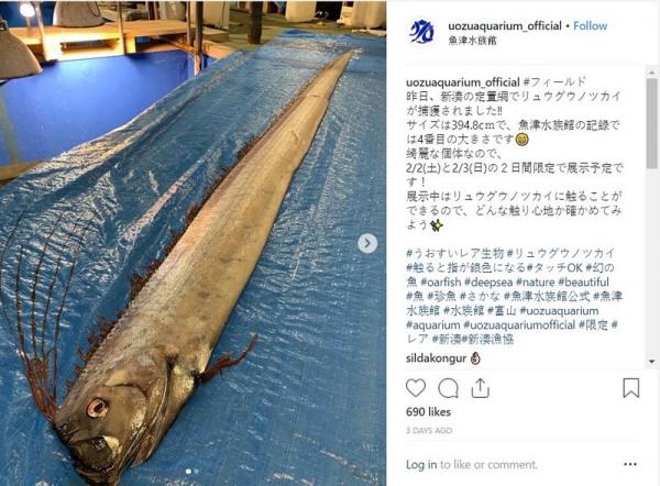 Người dân Nhật lo ngại cá mái chèo trôi vào bờ biển là điềm báo thảm họa động đất sóng thần. Ảnh: INSTAGRAM