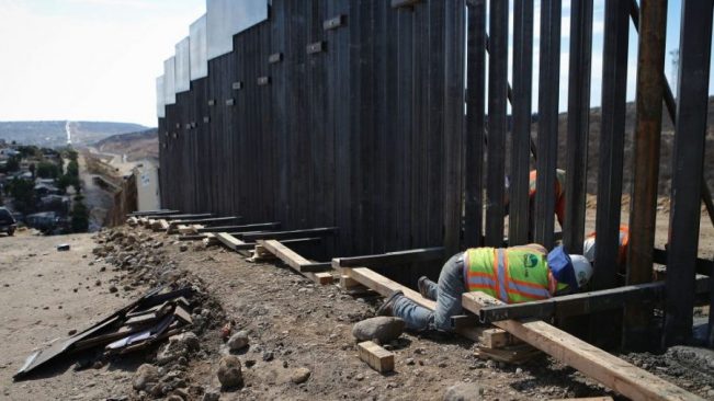 Một công nhân xây dựng lắp đặt hàng rào mới dọc theo hàng rào biên giới Hoa Kỳ – Mexico vào ngày 21/7/2018 tại Tijuana, Mexico. (Ảnh: Mario Tama / Getty Images).