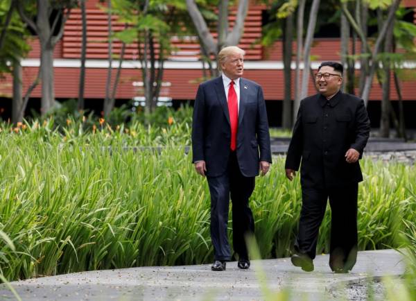 Tổng thống Mỹ Donald Trump và lãnh đạo Triều Tiên Kim Jong-un gặp nhau tại Singapore tháng 6 năm 2018