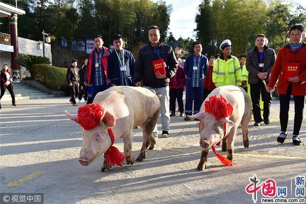 Tuy nhiên, một công ty ở Trung Quốc mới đây gây sự chú ý khi tổ chức sự kiện vinh danh và trao thưởng cho những nhân viên xuất sắc nhất năm ở một khu danh thắng tại thành phố Thanh Viễn, tỉnh Quảng Đông. Hai nhân viên có thành tích tốt nhất năm qua đã được tặng mỗi người 2 con lợn và tận tay dắt chúng về nhà.