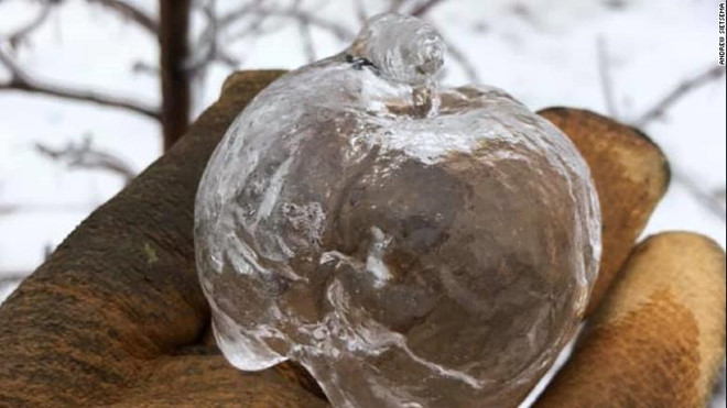 "Táo ma" thực chất là lớp vỏ băng còn sót lại sau khi những trái táo bên trong rơi xuống. Ảnh: Andrew Sietsema.