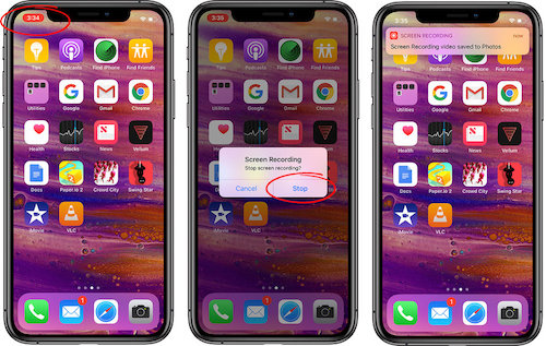 Bấm vào nút vừa thêm vào để tiến hành quay video màn hình, trong đó thanh trạng thái sẽ chuyển sang màu đỏ kèm bộ đếm giờ. Bấm vào khu vực đó để ngừng quay. Video được lưu dưới dạng định dạng MP4, chất lượng 45khung hình mỗi giây, độ phân giải 900 x 1.600 pixel trong thư viện ảnh.