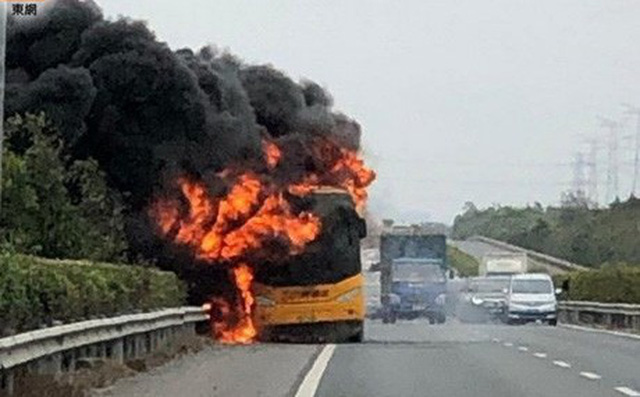 Chiếc xe buýt đi qua trạm thu phí Điền Tâm vào lúc 13 giờ đã bốc mùi khét nồng nặc. Người lái xe nhận thấy tình hình bất ổn nên đã kịp dừng xe ở làn tránh và để toàn bộ hành khách xuống xe và sơ tán đến một địa điểm an toàn gần đó, trước khi chiếc xe bốc cháy ở phần đuôi và phát nổ rồi chìm trong biển lửa.