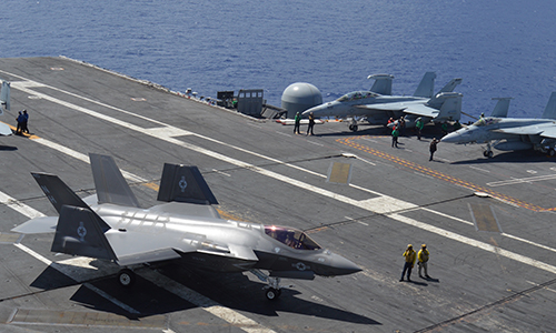 Tiêm kích F-35C vận hành thử trên tàu sân bay Mỹ. Ảnh: USNI.