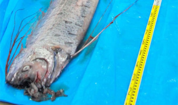Cụ thể, theo Express, hai con cá biển sâu dài 3-4m, đã mắc vào lưới của ngư dân. Hai con cá trên nếu trưởng thành có thể dài tới 11m. Trong truyền thuyết Nhật Bản, đây là điềm báo về ngày tận thế, sự diệt vọng. Cụ thể, theo truyền thuyết của người Nhật, một khi loài cá sống ở dưới đáy biển sâu dạt vào bờ hoặc nổi lên trên mặt nước thì khi đó một thảm họa tự nhiên đang đến gần.