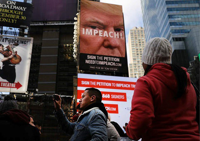 Một bảng quảng cáo ở Quảng trường Thời Đại (New York), kêu gọi phế truất Tổng thống Donald Trump.