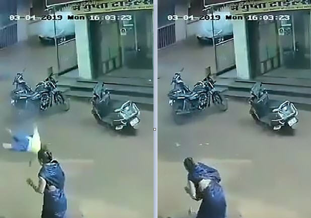 Toàn bộ vụ việc được camera an ninh nhà đối điện ghi lại được vào ngày 4 tháng 3 mới trên trên con phố Raghavendra Nagar thuộc thành phố Shivpuri ở bang Madhya Pradesh, Ấn Độ.