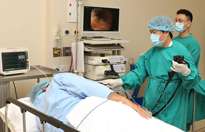 Bác sĩ Nguyễn Phước Lâm nội soi cho bệnh nhân. Ảnh: Minh Tâm.