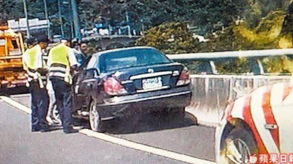 Chiếc xe đâm vào rào chắn cao tốc. Ảnh: Apple Daily.