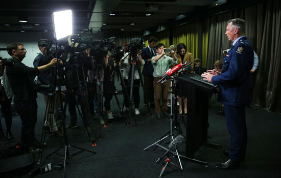 Cảnh sát trưởng New Zealand Mike Bush phát biểu tại buổi họp báo về vụ tấn công ở thủ đô Wellington.