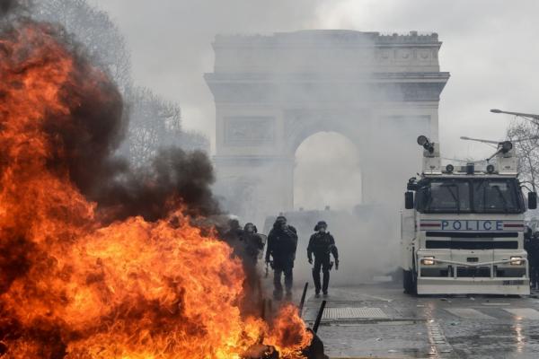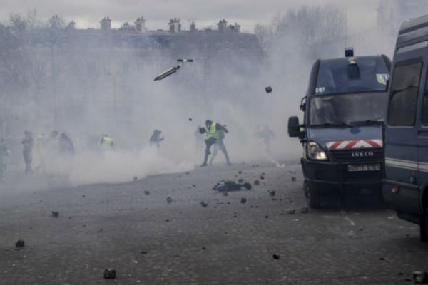Champs Elysées và Khải Hoàn Môn trong khói lửa mịt mù. Một số người biểu tình tấn công vào xe của các nhà chức trách, một số khác đập phá các cửa hàng dọc trên đại lộ đẹp nhất Paris -Champs Elysées. Nhiều vụ đụng độ với cảnh sát đã xảy ra trong cuộc xuống đường lần này của phong trào Áo Vàng tại Pháp.