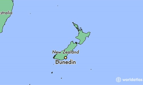 Vị trí thành phố Dunedin trên Đảo Nam của New Zealand.