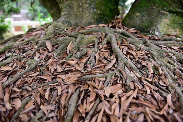 Bộ rễ của cây xù xì nổi hẳn lên mặt đất
