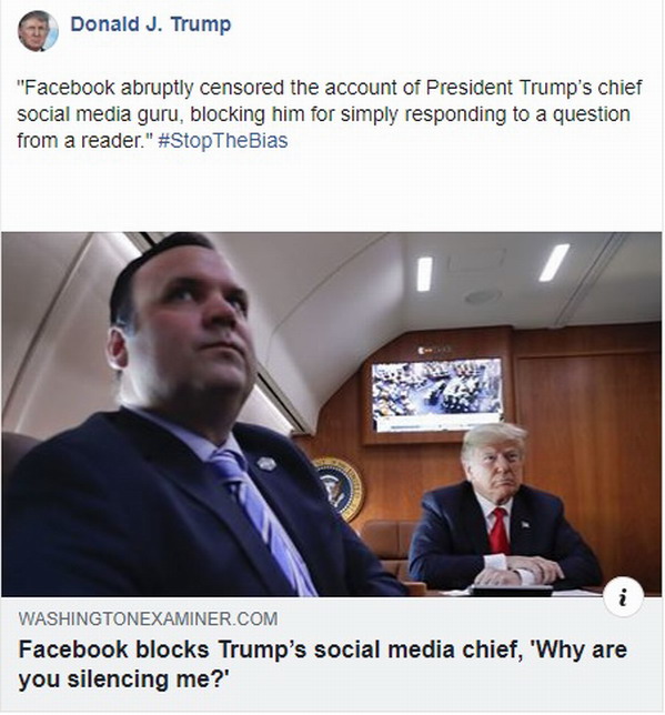 Phát biểu linh tinh, trưởng ban mạng xã hội của Tổng thống Trump bị block. Facebook đột ngột kiểm duyệt tài khoản của Scavino trưởng ban phương tiện truyền thông xã hội của Tổng thống Trump, ngăn chặn ông quyền trả lời câu hỏi từ độc giả.