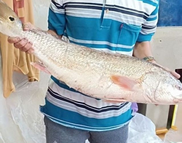 Con cá này dài khoảng nửa mét, bề ngang chừng 20cm, có trọng lượng nặng 5kg, toàn thân cá màu vàng óng. Nhiều người nghi đây là cá sủ vàng nên kéo đến xem rất đông. Trong số này, có người trả giá 150 triệu đồng để sở hữu con cá lạ.