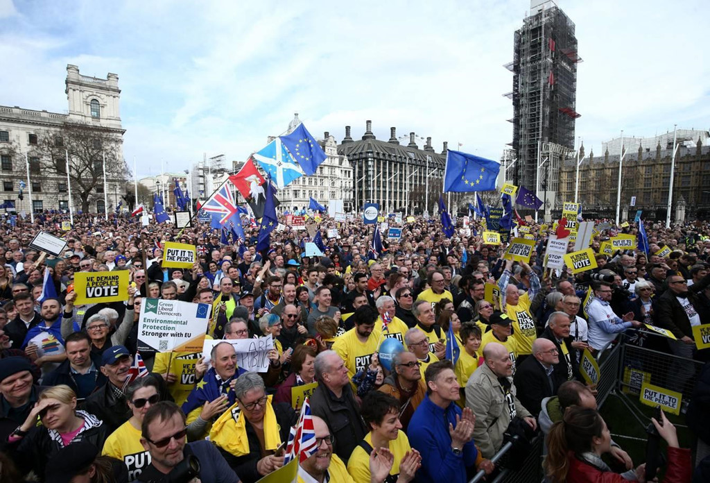 Cà triệu người người biểu tình chống lại việc Anh rời khỏi EU (Brexit) rầm rộ đổ vào trung tâm thủ đô London, đòi chính phủ Anh do Đảng Bảo thủ lãnh đạo tổ chức một cuộc trưng cầu dân ý mới về việc Anh có nên rời Liên minh Châu Âu hay không, để yêu cầu các nghị sĩ cho họ một cuộc trưng cầu dân ý mới về Brexit.