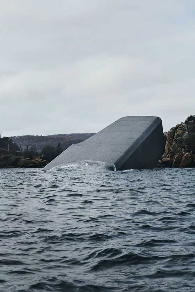 Tổng thể nhà hàng Under là một khối kiến trúc đơn nhất dài gần 34 mét, được đặt “nửa chìm nửa nổi” ở một triền đá đâm sát ra biển. Cách sắp đặt này còn tạo cho người xem cảm giác như cả tòa nhà đang trồi lên từ lòng đại dương.