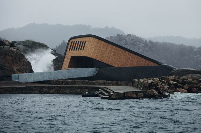 Nhà hàng nằm dưới biển với lối thiết kế vô cùng độc đáo. Một nửa của nó nằm ở dưới nước, một nửa ở trên bờ. Bạn sẽ phải thốt lên khi lần đầu nhìn thấy thiết kế này.