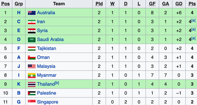 Thái Lan cũng chỉ xếp thứ 9 trong danh sách các đội nhì bảng có thành tích tốt nhất. Nếu không phải chủ nhà của vòng chung kết U23 châu Á 2020, đội bóng xứ chùa vàng cũng không thể góp mặt ở sân chơi này.