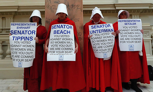Những người biểu tình phản đối thông qua luật cấm phá thai ở trung tâm Atlanta, bang Georgia, Mỹ ngày 22/3. Ảnh: AP.