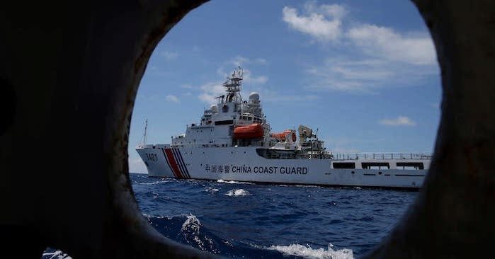 Một tàu Cảnh sát biển Trung Quốc cố gắng chặn tàu chính phủ Philippines khi tàu này cố gắng vào Bãi Cỏ Mây (Second Thomas Shoal) ở Biển Đông đang tranh chấp. (Ảnh: AP)