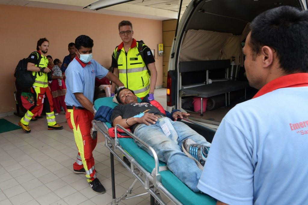 Hồi tháng 2, bộ trưởng du lịch Nepal cùng 6 người khác đã thiệt mạng trong một vụ đâm máy bay tại miền Đông nước này. Hồ sơ an toàn hàng không tệ hại đã khiến các hãng hàng không Nepal bị cấm hoạt động trên không phận các nước Liên minh châu Âu. Trong ảnh, một nạn nhân vụ tai nạn máy bay hôm 14/4 được đưa vào bệnh viện. Ảnh: AFP.