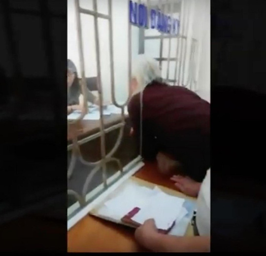 Theo đó, đoạn video clip được một người phụ nữ phát trực tiếp trên Facebook ghi lại cảnh tượng có nhiều người dân tập trung đứng, ngồi phía ngoài được ngăn bởi hàng rào sắt và 1 cái lỗ, còn bên trong là một số cán bộ đang làm nhiệm vụ. Để có thể làm việc được với cán bộ, người dân từ già đến trẻ phải chui đầu qua một cái lỗ lọt vừa đầu người.