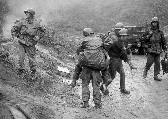 Thương binh Mỹ trên chiến trường Triều Tiên. Nguồn ảnh: Foto.