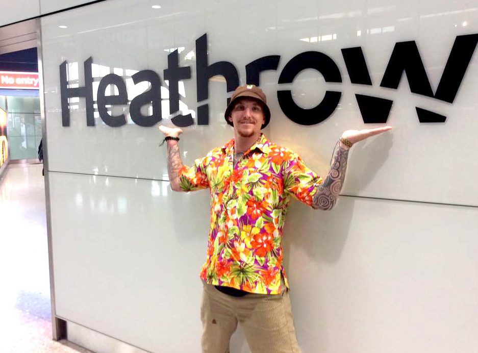 Sau chuyến đi nhớ đời đến Thái, anh Chris mừng rỡ chụp ảnh khi về tới sân bay Heathrow (London, Anh)