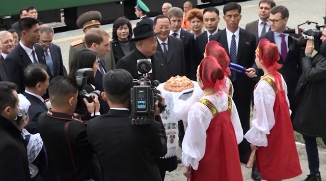Ông Natalya Karpova, một quan chức địa phương, cho biết với hãng tin TASS rằng: "Ngay khi ngài Kim Jong-un bước xuống tàu. Chúng tôi đã dành tặng ông ấy những bó hoa tươi thắm cùng với bánh mì và muối. Ông ấy vui mừng đón nhận những bó hoa và thưởng thức bánh mì và muối. Ông ấy có thể sẽ tới thăm bảo tàng Kim Il Sung ngay bây giờ”. Bảo tàng mà ông Karpova đề cập đến là một ngôi nhà bằng gỗ được xây dựng năm 1986 ở biên giới giữa Nga và Triều Tiên ngay trước chuyến thăm của cố lãnh đạo Triều Tiên.