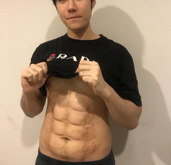 Nhìn từ lúc tạo hình đến thành quả hiện tại có thể thấy kết quả phẫu thuật của anh chàng này khá mĩ mãn. Nếu chỉ nhìn bằng mắt thường thì khó có thể nhận ra rằng, cơ bụng săn chắc kia chỉ là kết quả của "dao kéo".