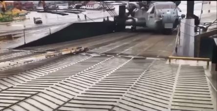 Old  Default Trực thăng quân sự Mỹ đứt xích, trôi tuột khỏi tàu vận tải