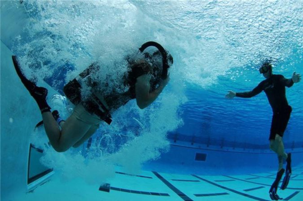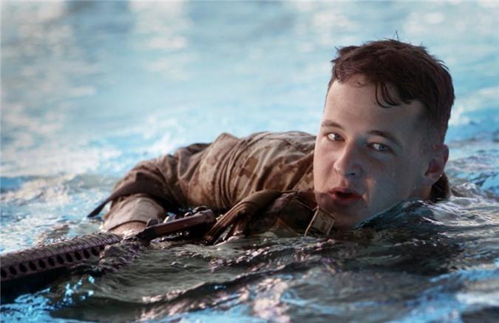 Lính Hải quân được đào tạo kỹ năng sinh tồn dưới nước trong đó có bài tập bơi 50 mét với đầy đủ trang bị trên người. Bài huấn luyện này diễn ra tại căn cứ Lejeune, Bắc Carolina.